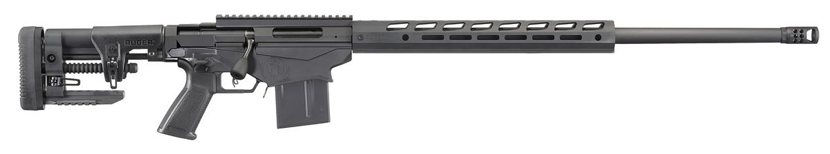 The Ruger Precision Rifle has Medium-contour barrel and features a Ruger Precision Rifle Hybrid Muzzle Brake to reduce recoil while minimizing noise and blast. The fully adjustable Ruger Precision MSR stock features a bottom Picatinny rail and soft rubber buttpad. The 15" aluminum free-float handguard is black hard-coat anodized aluminum and features Magpul® M-LOK® slots on all four sides for improved scope clearance for long-range scopes and easy mounting of M-LOK-compatible rails and accessories.