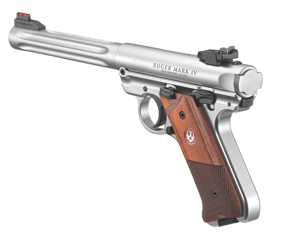 The Ruger Mark IV Hunter pistol has a simple, one-button takedown for quick and easy field-stripping and proper chamber-to-muzzle cleaning. The barrel is cold hammer-forged, resulting in ultra-precise rifling that provides exceptional accuracy and longevity. The Ruger Mark IV Hunter pistol comes with an internal cylindrical bolt construction to ensure permanent sight-to-barrel alignment and higher accuracy potential.