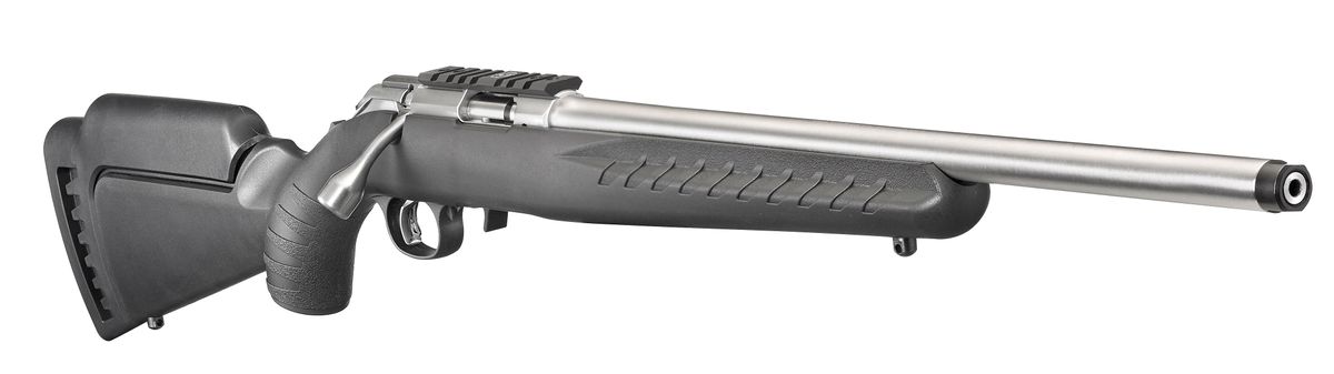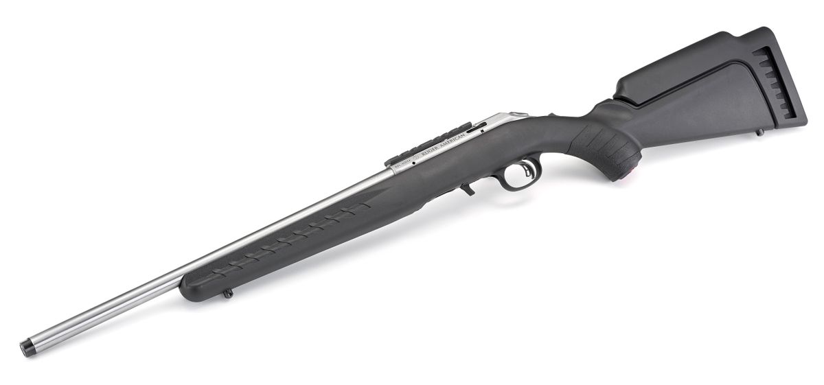 The Ruger American Rimfire Stainless has a threaded barrel with factory installed thread protector. The barrel is cold hammer-forged, resulting in ultra-precise rifling that provides exceptional accuracy and longevity. Includes interchangeable standard length of pull, high comb stock module ideal for use with optics. By simply removing the rear sling swivel stud, you can change the stock module in seconds. Compact stock modules are also available.