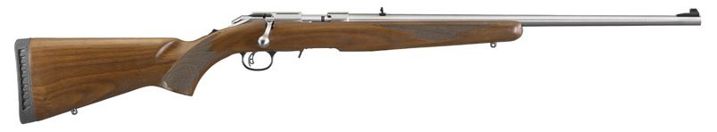 The Ruger American Rimfire has a cold hammer-forged barrel, resulting in ultra-precise rifling that provides exceptional accuracy and longevity. The Ruger American Rimfire Stainless Walnut features a wood stock with checkering on the grip and forend plus a rubber buttpad to give you a comfortable length of pull.
