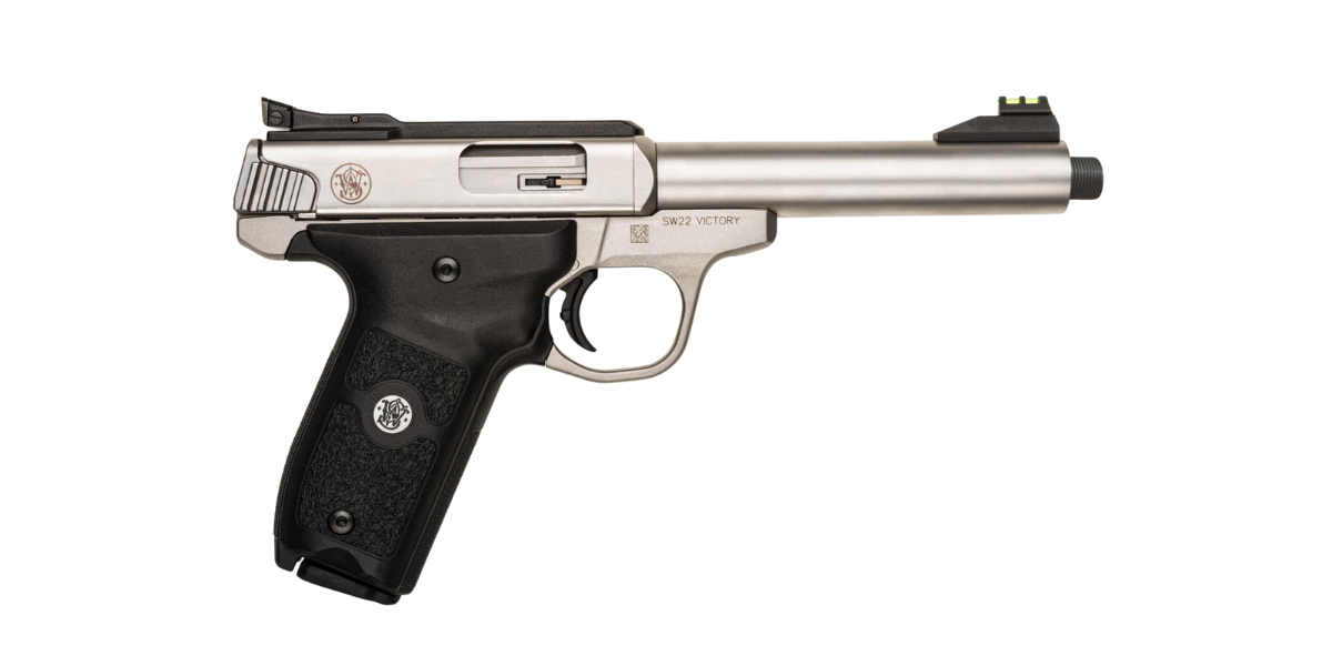 The SW22 Victory is constructed on a single-action, enclosed hammer-fired, blowback semi-automatic design. Chambered in .22 LR, the Victory comes highly featured with innovative design qualities that include a match-grade, interchangeable barrel for superb accuracy on the range or in the field along with a simple one-screw takedown design.