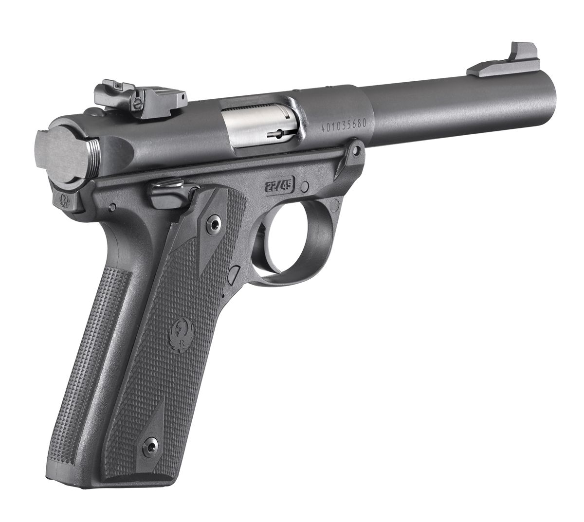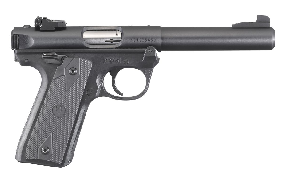 The Ruger Mark IV 22/45 Target pistol has a simple, one-button takedown for quick and easy field-stripping and proper chamber-to-muzzle cleaning. The barrel is cold hammer-forged, resulting in ultra-precise rifling that provides exceptional accuracy and longevity. The Ruger Mark IV 22/45 Target pistol comes with an internal cylindrical bolt construction to ensure permanent sight-to-barrel alignment and higher accuracy potential.