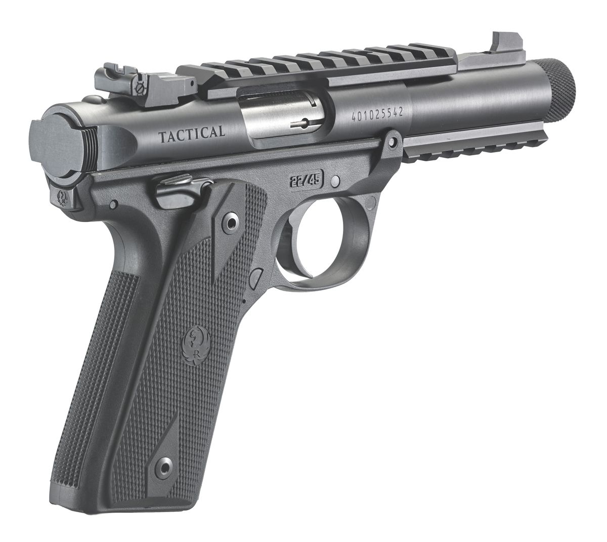 The Ruger Mark IV 22/45 Tactical pistol has a simple, one-button takedown for quick and easy field-stripping and proper chamber-to-muzzle cleaning. The threaded barrel is cold hammer-forged, resulting in ultra-precise rifling that provides exceptional accuracy and longevity. The Ruger Mark IV 22/45 Tactical pistol comes with an internal cylindrical bolt construction to ensure permanent sight-to-barrel alignment and higher accuracy potential.