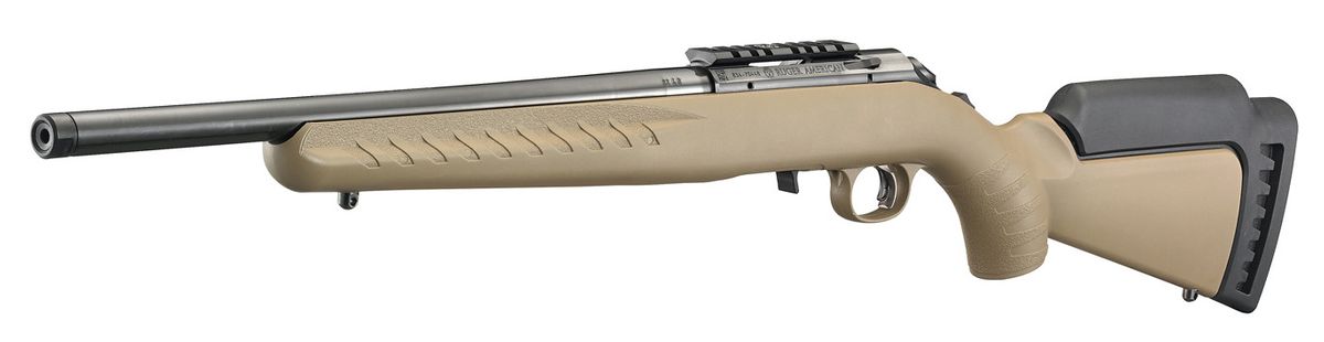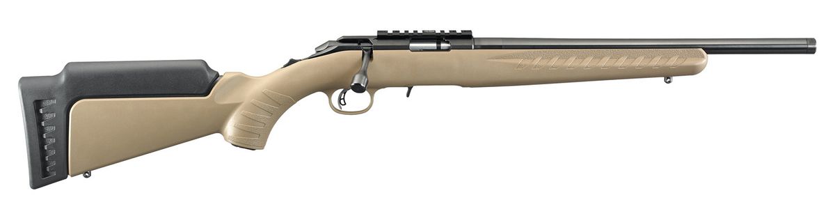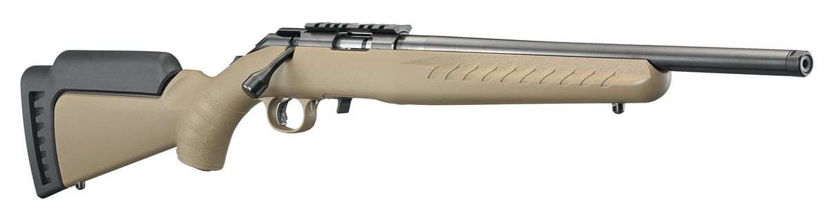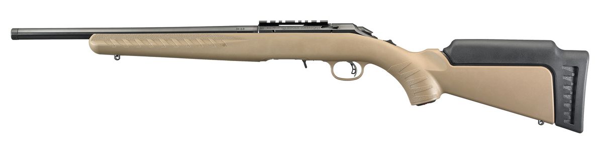 The Ruger American Rimfire Ranch takes cues from it's big brother the centrefire Ranch rifle, including a short 16" threaded barrel, Flat Dark Earth stock and Picatinny rail. Includes interchangeable standard length of pull, high comb stock module ideal for use with optics. By simply removing the rear sling swivel stud, you can change the stock module in seconds. Compact stock modules are also available.