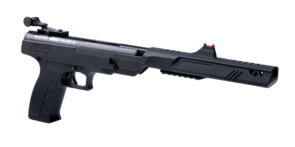 The Mark II really spins your pellets thanks to Crosman's Nitro Piston technology. This pistol can fire pellets downrange at speeds of up to 650 fps and is designed for target shooting and backyard plinking. Even in low light, you can easily obtain a bead on your target with the fiber-optic sight. If you'd rather, you can also remove the rear sight and add your own optics to the 11mm rail.