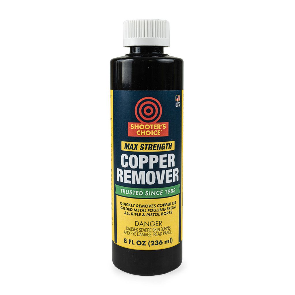 Shooter’s Choice Copper Remover (8 oz plastic bottle) is a special extra strength formula for tough pistol and rifle cleaning jobs. Our Copper Remover quickly removes copper or gilded metal fouling from all rifle and pistol bores.