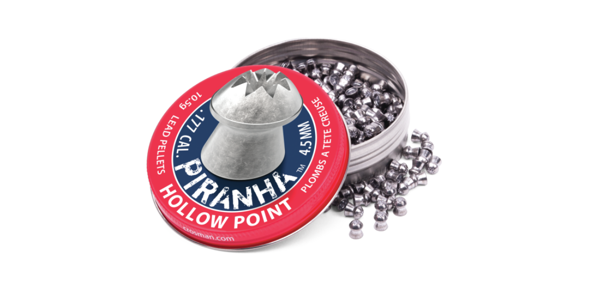 Put some bite into your shooting with the patent pending design of the NEW Crosman Piranha pellet! The shark tooth edging of this hollowpoint pellet enhances expansion while preserving an aerodynamic shape for maximum accuracy.