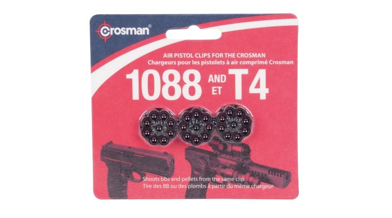 3 spare clips for the 1088, 1008, and T4 series of pistols. Holds BBs or Pellets.