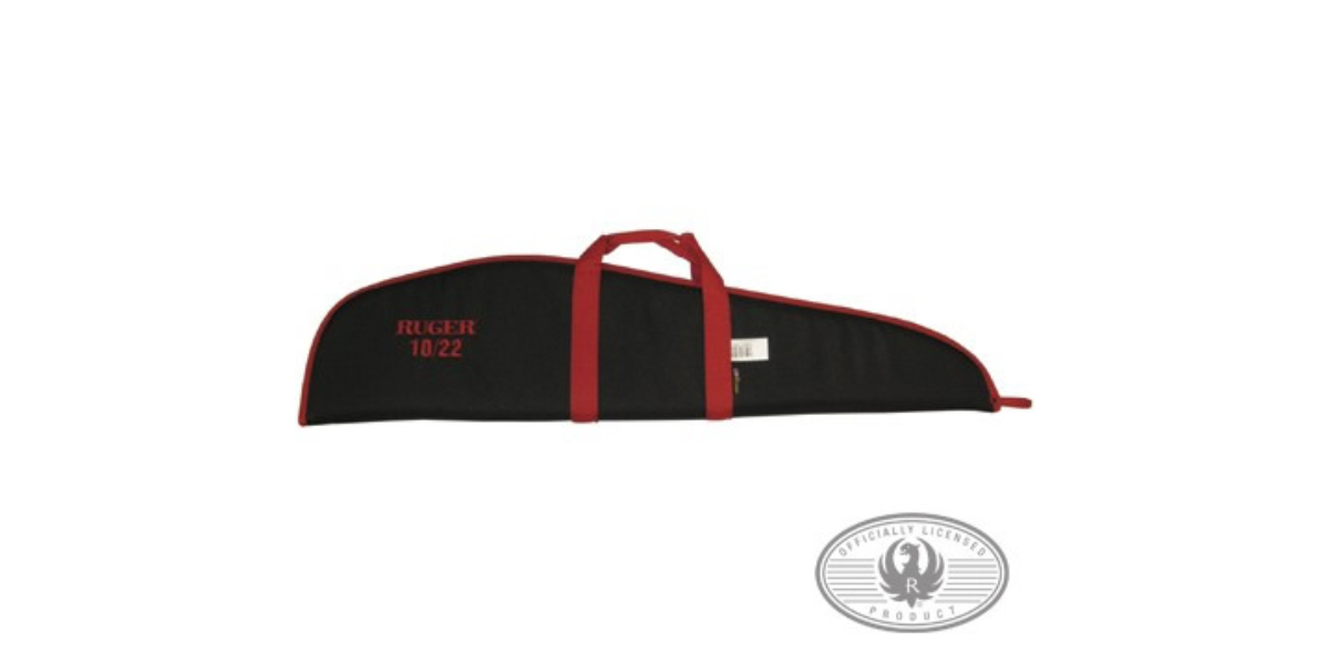 40" long Endura rifle case in black with red trim and embroidery.