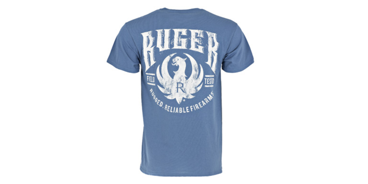 5.2 oz., 100% pre-shrunk cotton denim short-sleeved tee. Features include taped neck and shoulder seams for durability, two-needle hemmed sleeves and bottom that won't unravel, and a seamless rib knit collar.