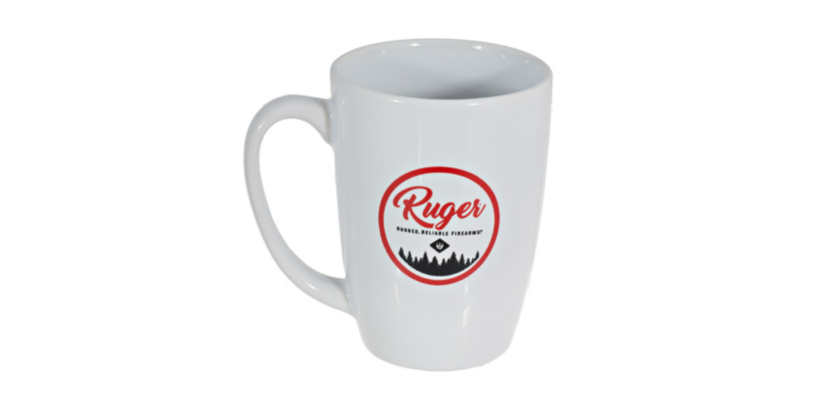 Ruger branded white ceramic 16oz mug.