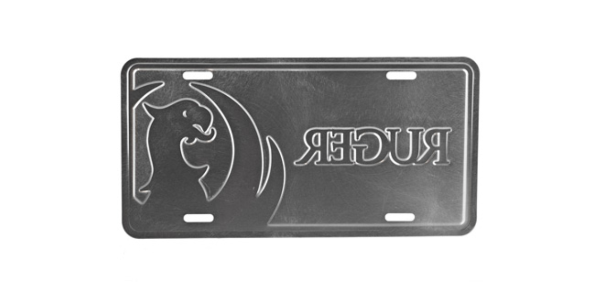 Ruger branded red aluminum license plate featuring a white Ruger logo.
