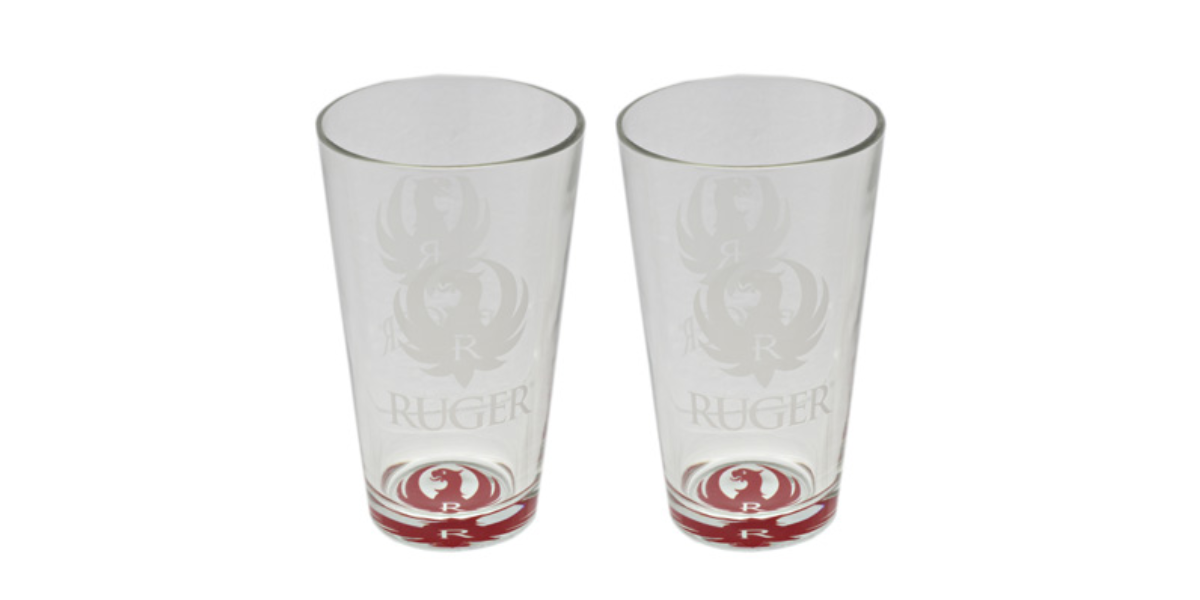 16 ounce high glass with Ruger logo etched on the sides