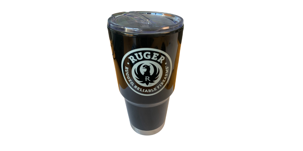 Black Adriatic mug with white Ruger branding.
