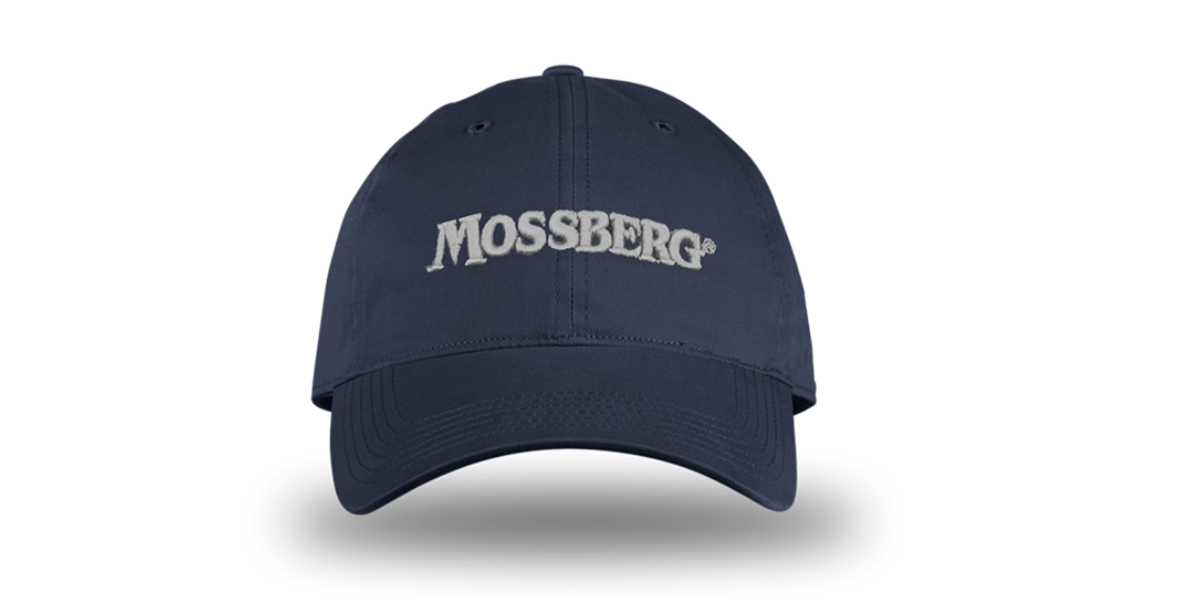 This unstructured navy brushed chino cap with a grey embroidered logo is your everyday Mossberg hat.